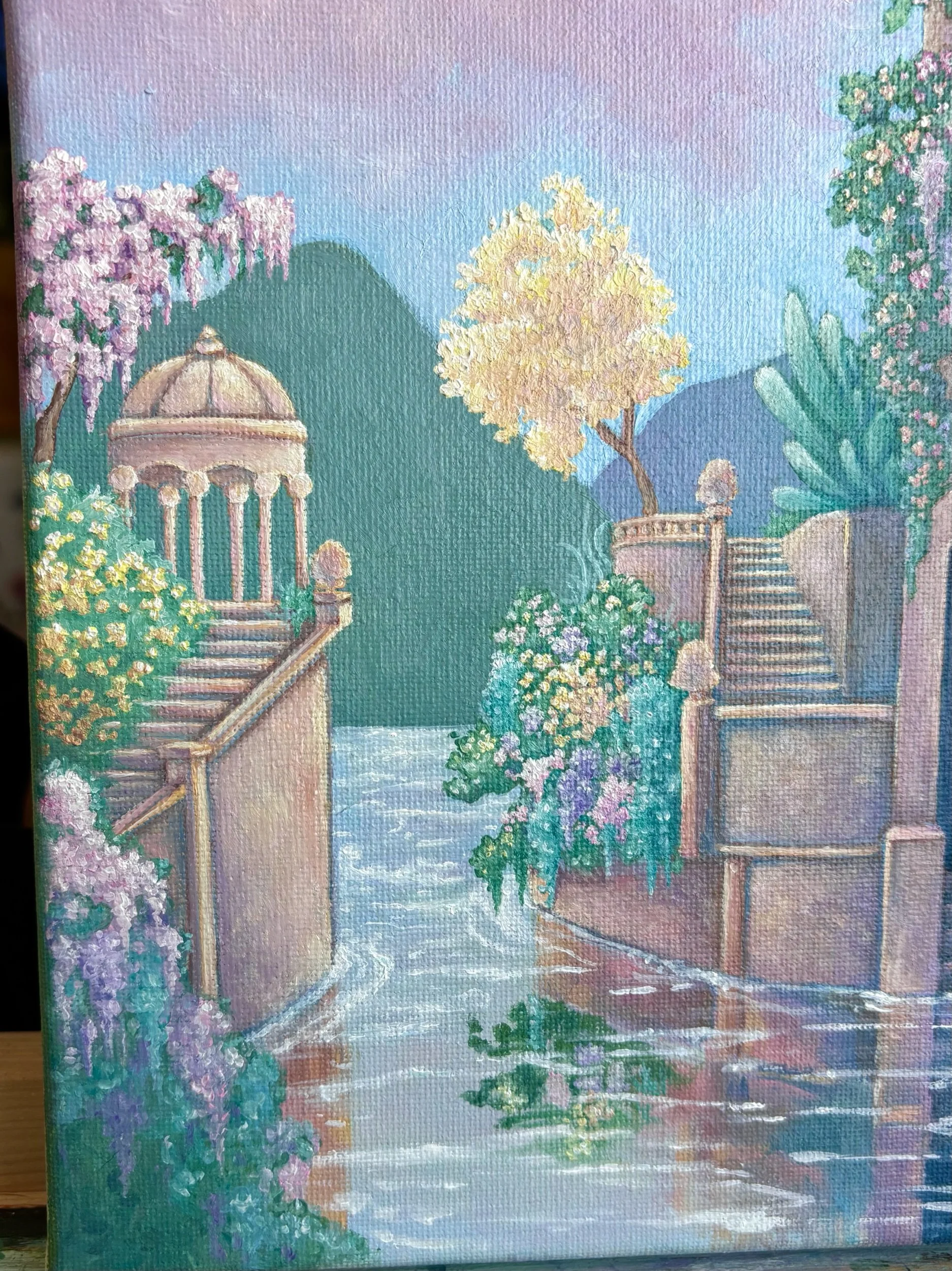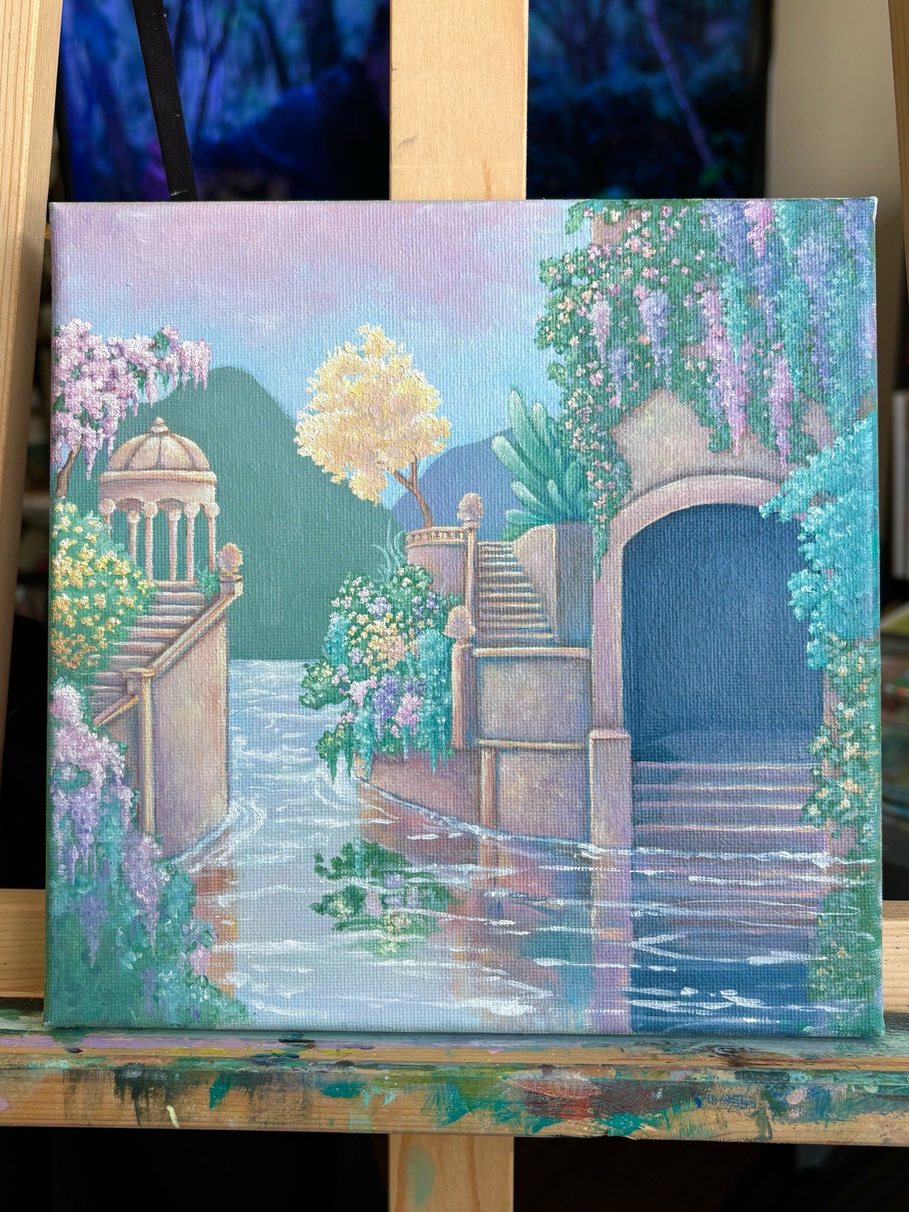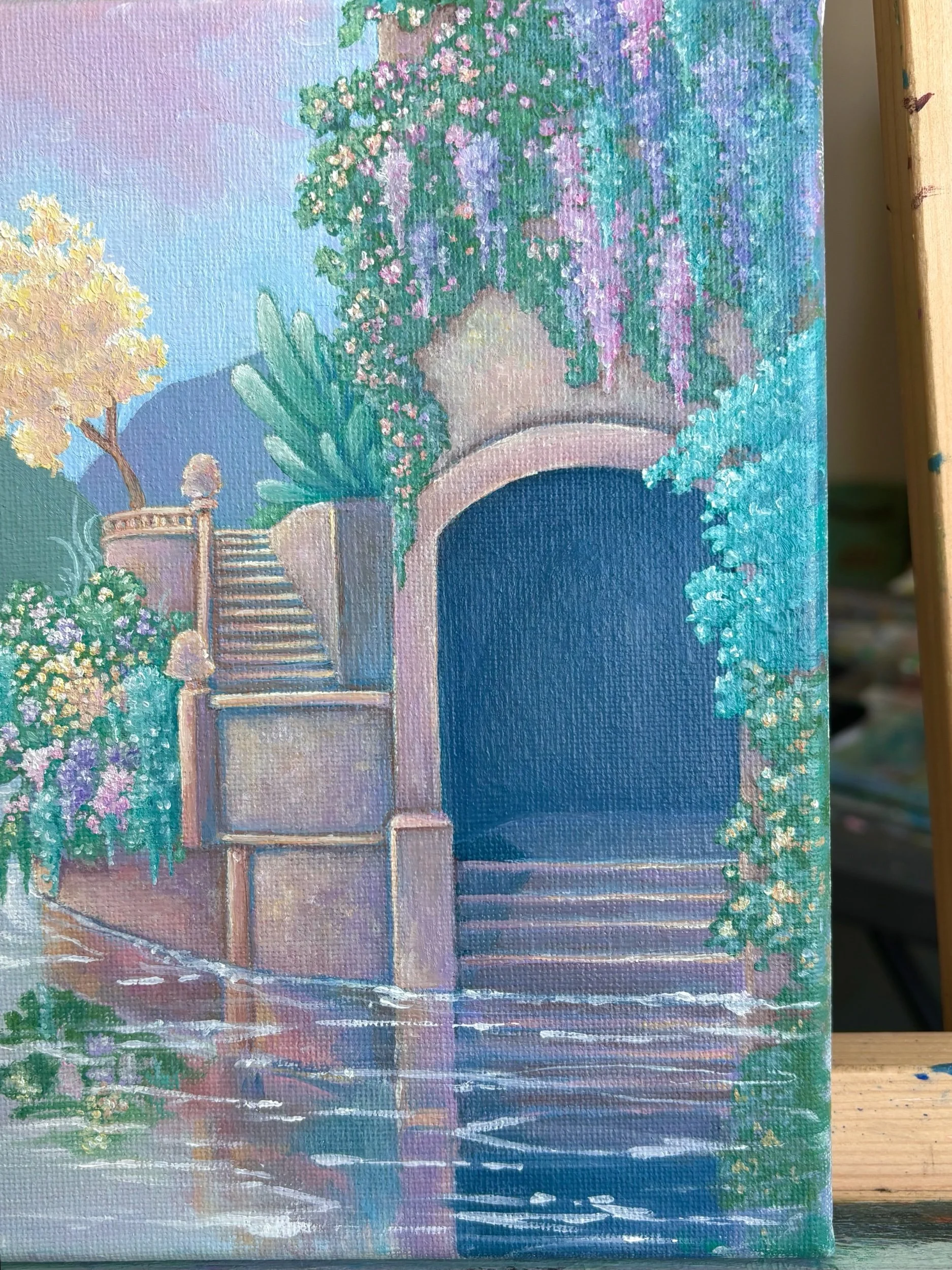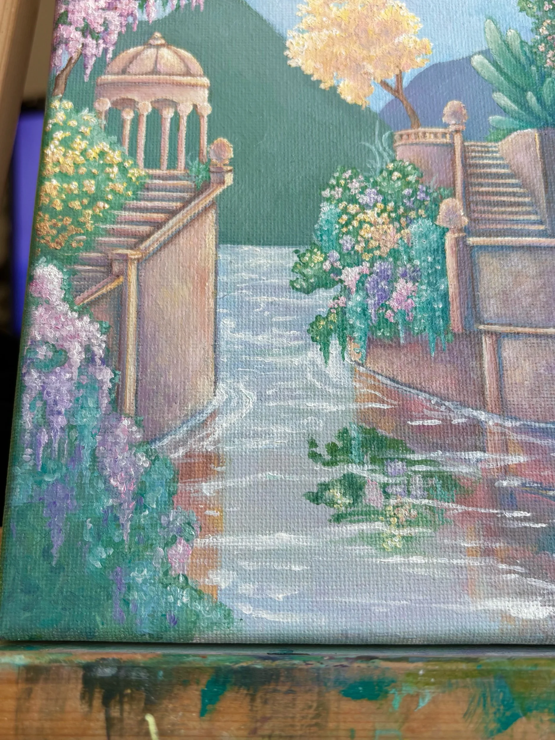 This serene Italian scene was painted in October of 2025 using Oil paint on stretched canvas.